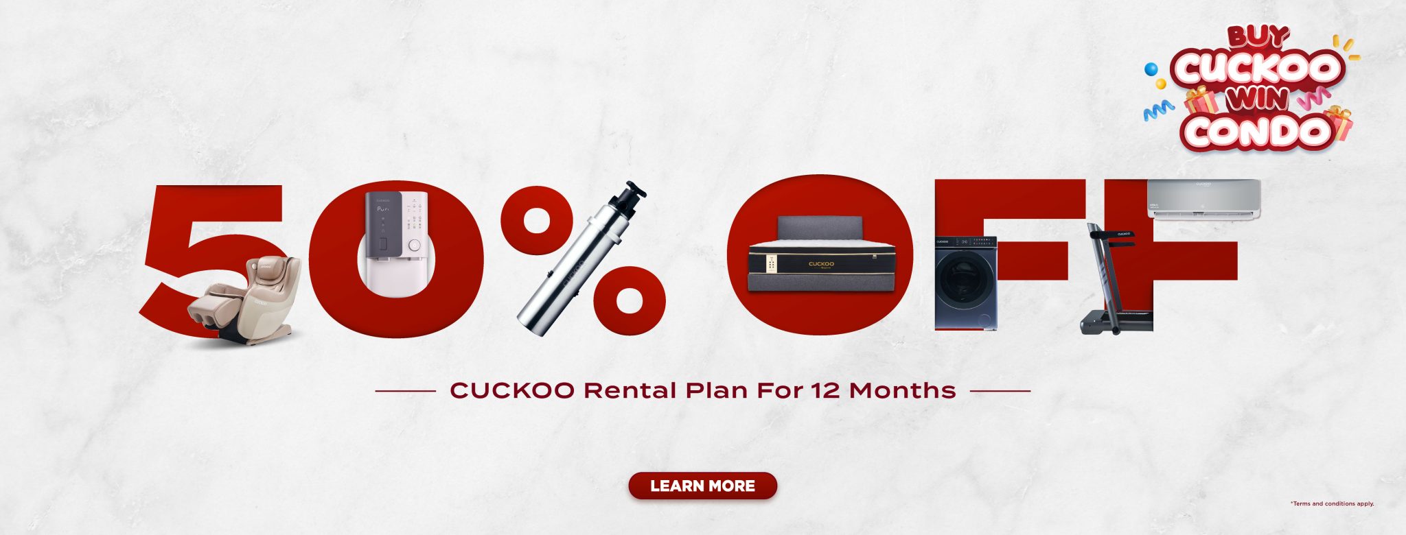 Cuckoo Home Appliances Product rental plan/ outright plan/ goood plan/ trade in or combo plan from product water purifier, air purifier, under sink water purifier, outdoor filter, massage chair, lounger, mattress, daybed, washer and dryer 2 in 1, pressure multicooker and air conditioners.